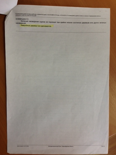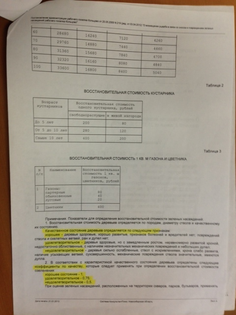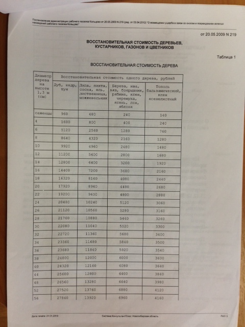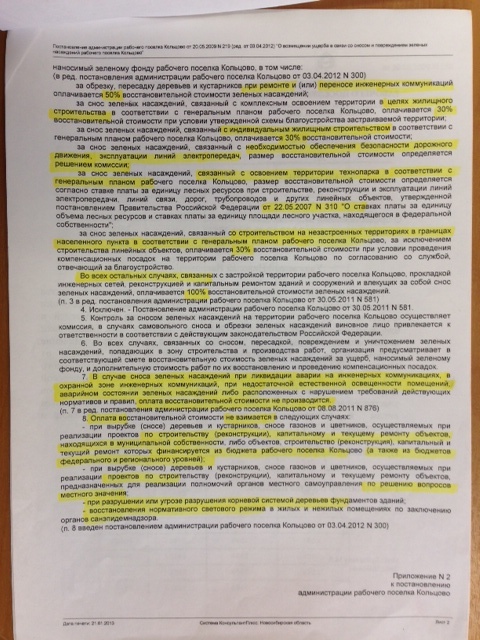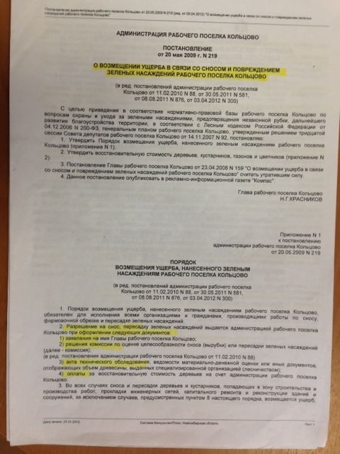Постановление о возмещении ущерба в связи со сносом и повреждением зелёных насаждений рабочего посёлка Кольцово