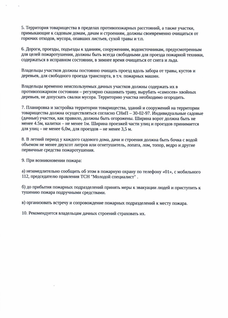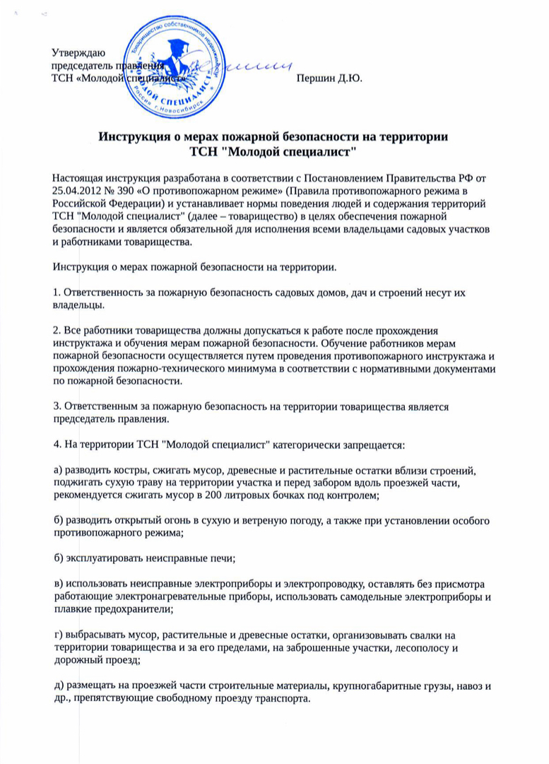 Инструкция о мерах ПБ на территории ТСН "Молодой специалист"