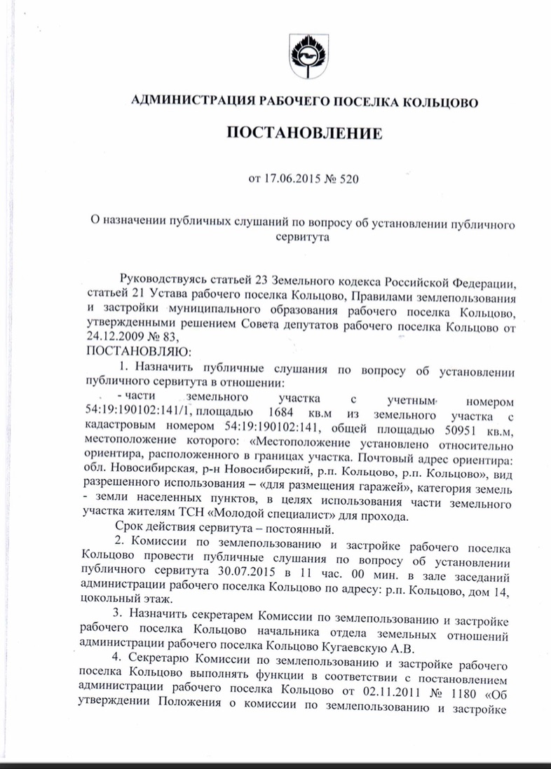 Приглашаем на публичные слушания по вопросу об установлении публичного сервитута.
